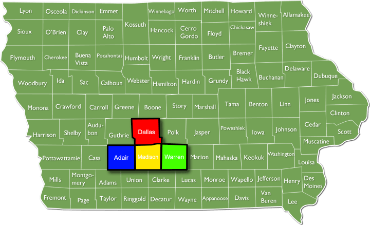 Adair, Dallas, Madison, and Warren County.